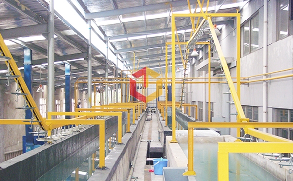 浸槽式前處理方法是涂裝前處理常用的方法之一。其過程是將被處理的工件浸沒在盛有槽液的前處理槽中,經(jīng)過一定時間的化學反應來完成除油,除銹,磷化及鈍化等工序。按生產(chǎn)性質(zhì)和工件輸送方式可分為通過式和固定式兩類浸漬設備。通過式浸漬設備是懸掛輸送機將工件連續(xù)地輸入浸漬槽而進行表面處理。固定式浸漬設備通常是用電葫蘆或自行車將工件間歇地輸入浸槽而進行表面處理。