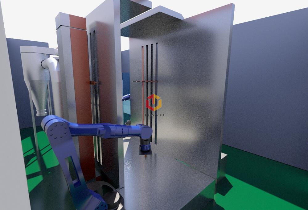 工藝步驟:利用靜電吸附原理,在工件的表面均勻的噴上一層粉末涂料; 落下的粉末通過回收系統(tǒng)回收。