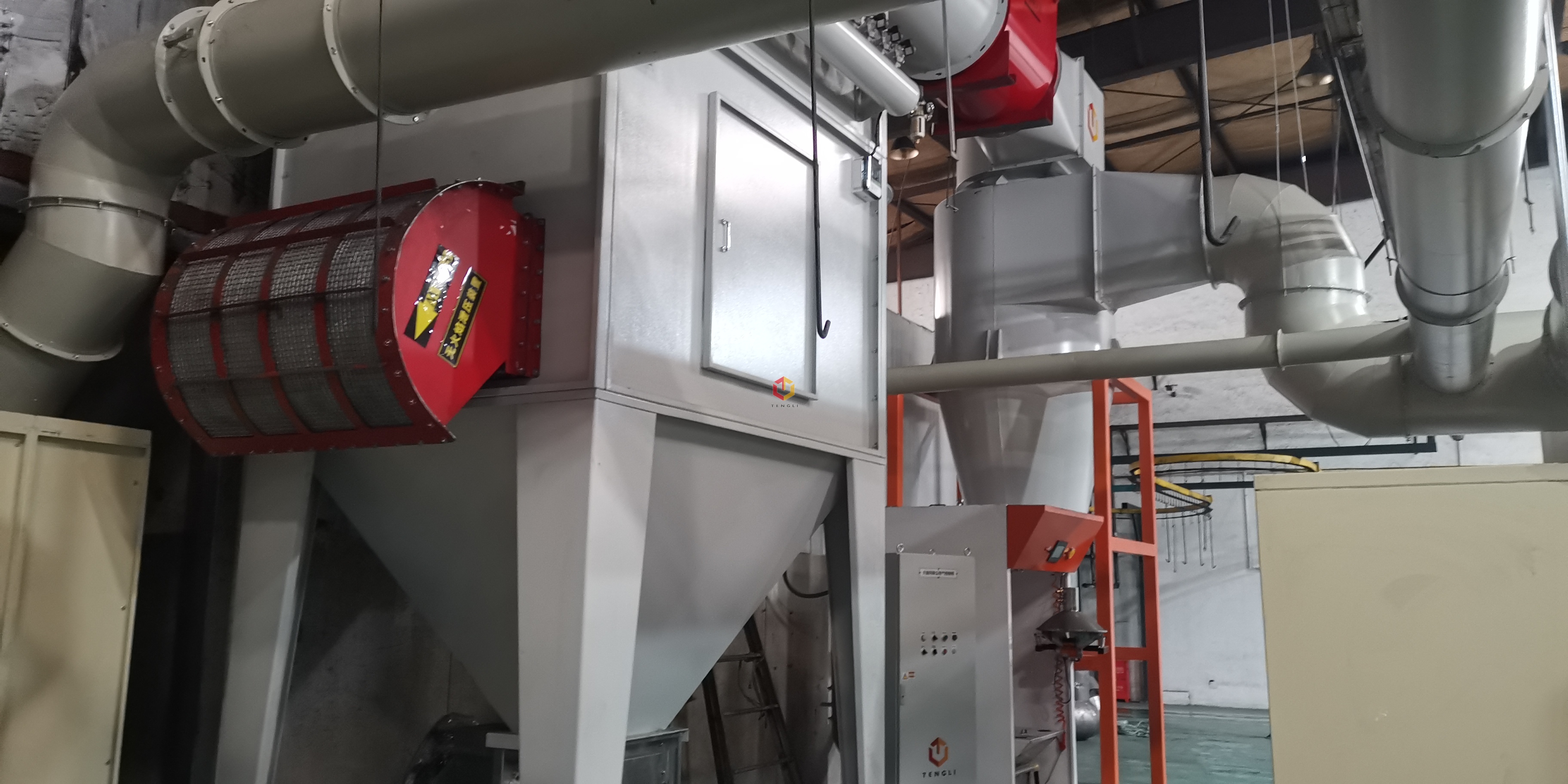 正隆大旋風(fēng)粉末回收機系統(tǒng)組成部分包括噴房(工程塑料板或SUS板可選)+大旋風(fēng)分離器+管道+二次精密過濾箱。